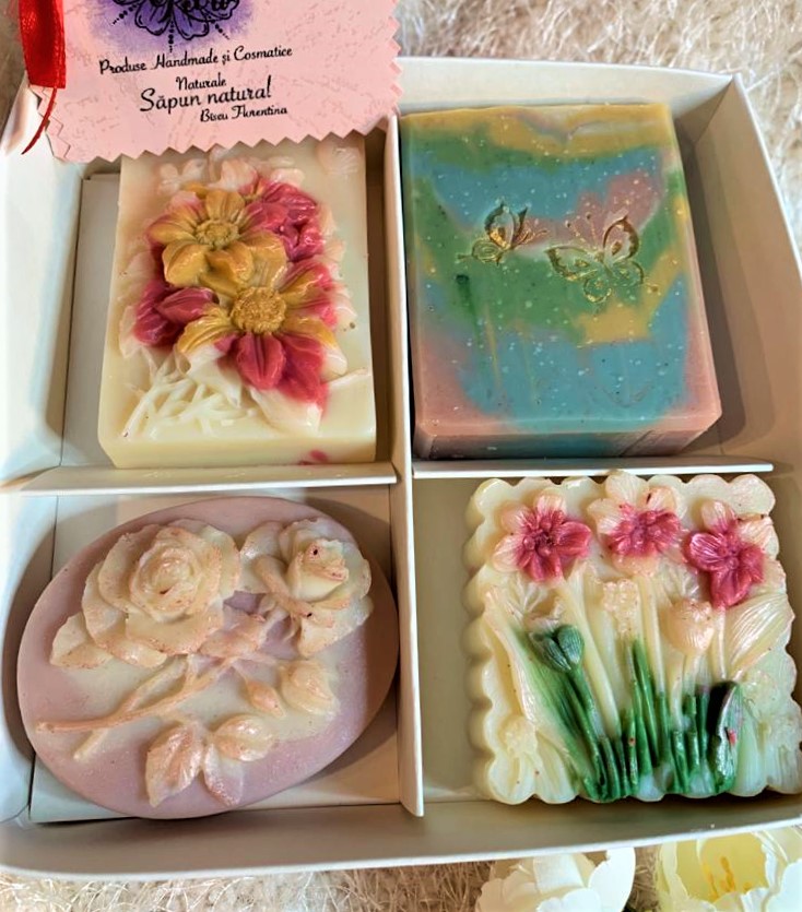 Săpunul ocupă un loc important în viața noastră de zi cu zi, dar compoziția lui este, în general, ignorată. Multe personae au ajuns să își dea seama că doresc altceva, mai natural, mai frumos, mai deosebit. Săpunurile noastre sunt produse prin metoda “la rece” și folosim ingrediente naturale la prepararea lui: uleiuri și unturi vegetale naturale, ape florale, argile, macerate din plante si flori uscate, miere, polen și lapte. Sunt colorate cu macerate din rădăcini din plante și flori, argile, pudre din plante și flori, pudre cosmetice și sunt parfumate cu uleiuri esențiale și parfumanți naturali. De aceea , se poate observa că parfumul nu persistă ani întregi sau culoarea se mai estompează, dar calitatea săpunurilor va fi aceeași. Un alt aspect la fabricarea lor este folosirea sodei caustice făra de care nu are loc procesul de saponificare și care se descompune și formează sărurile uleiurilor/unturilor folosite, iar în produsul final nu mai apare. În prepararea săpunurilor din comerț, soda nu intră în compoziția lor deoarece se folosesc detergenți.